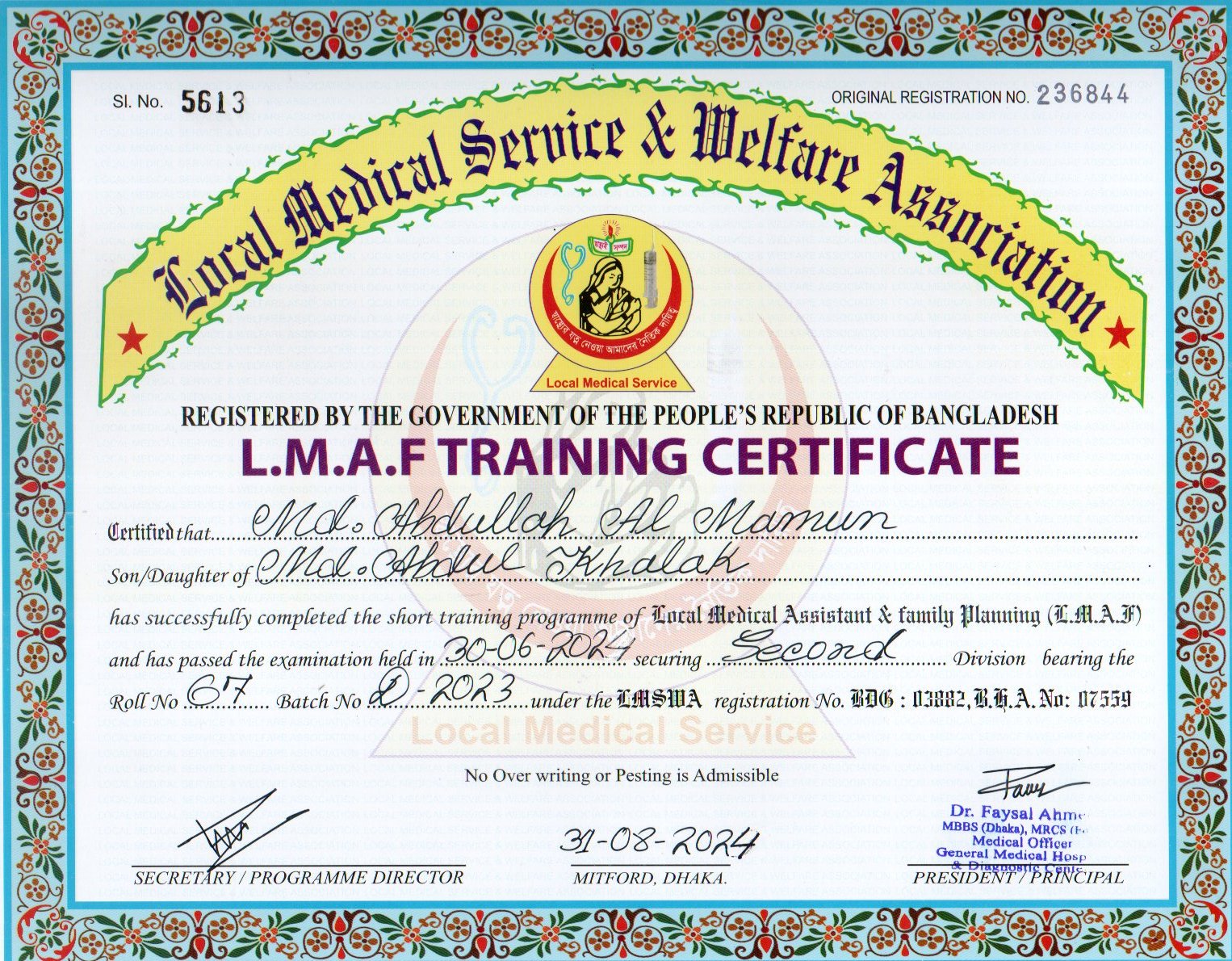 | Mother's Name | Mst Kamrun Nahar | Institute | LOCAL MEDICAL SERVICE |