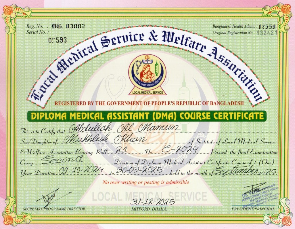 | Mother's Name | Jamila Khatun | Institute | LOCAL MEDICAL SERVICE |