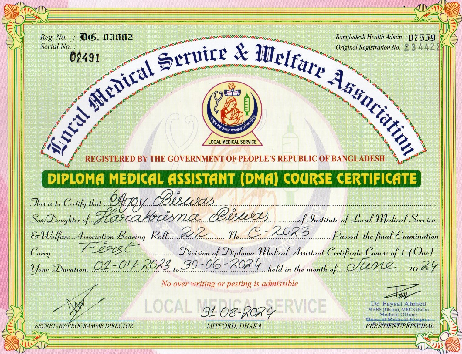 | Mother's Name | Bimala Rani Biswas | Institute | LOCAL MEDICAL SERVICE |