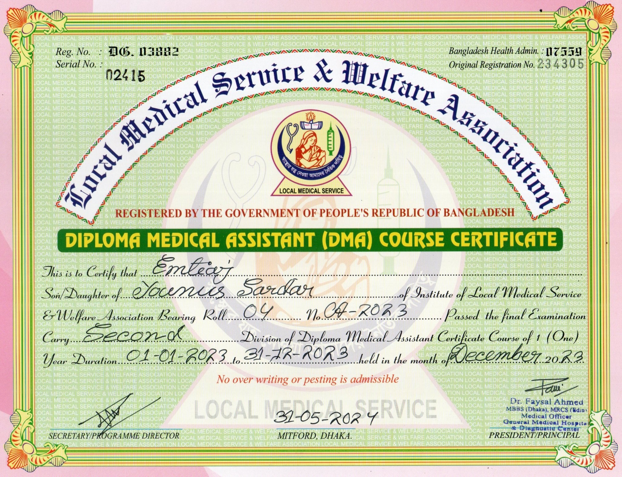 | Mother's Name | Amena Begum | Institute | LOCAL MEDICAL SERVICE |