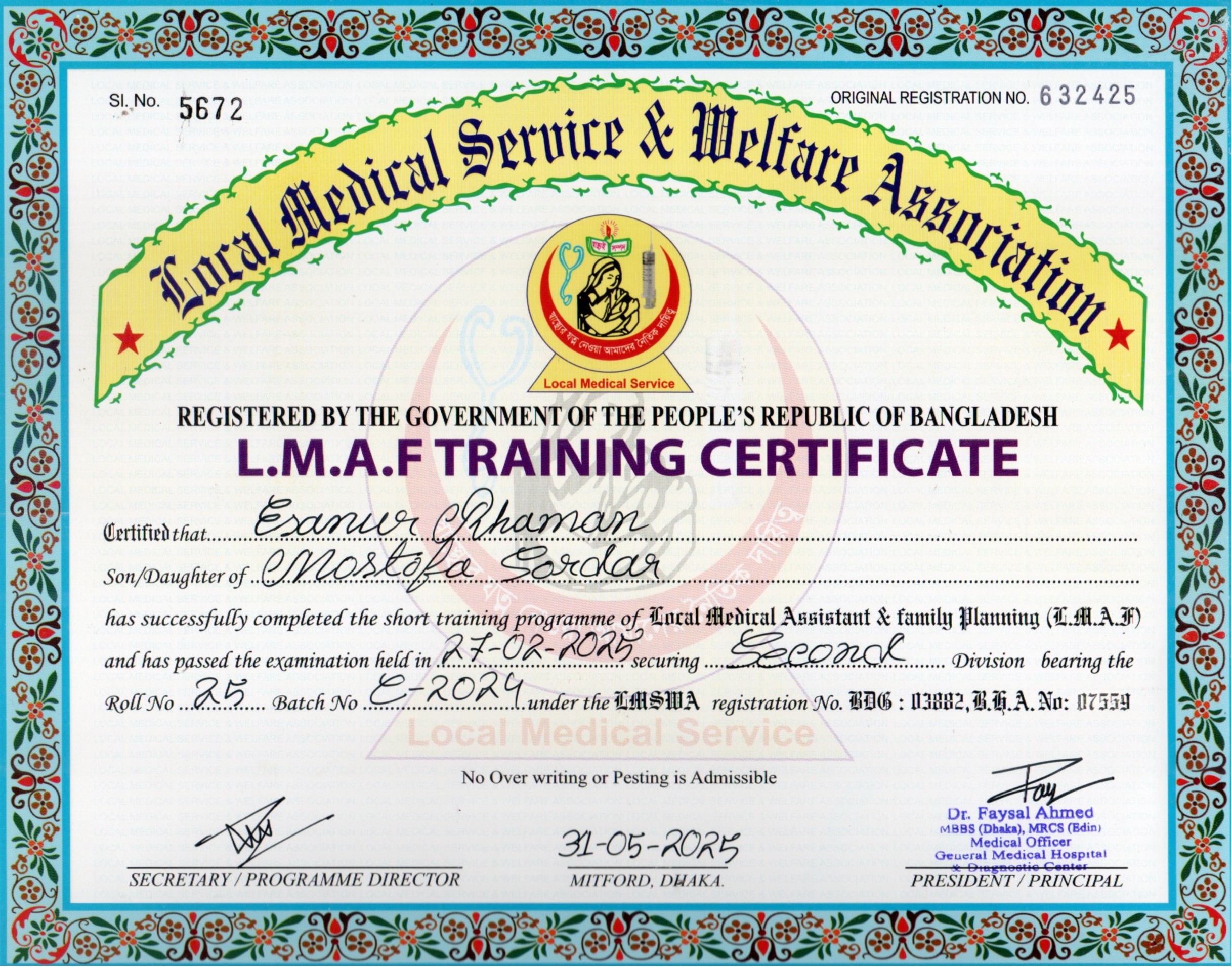 | Mother's Name | Jharna Begum | Institute | LOCAL MEDICAL SERVICE |