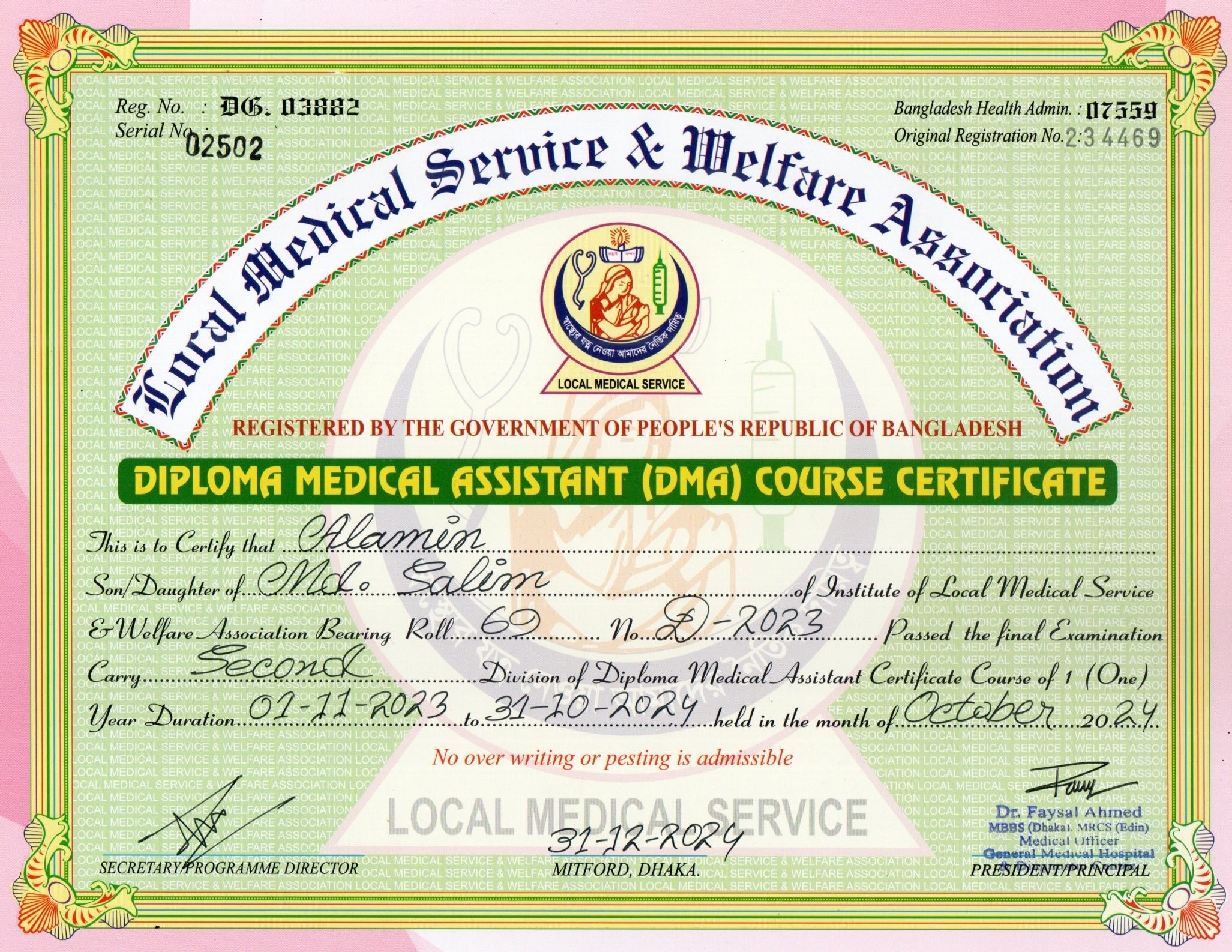 | Mother's Name | Shirin | Institute | LOCAL MEDICAL SERVICE |