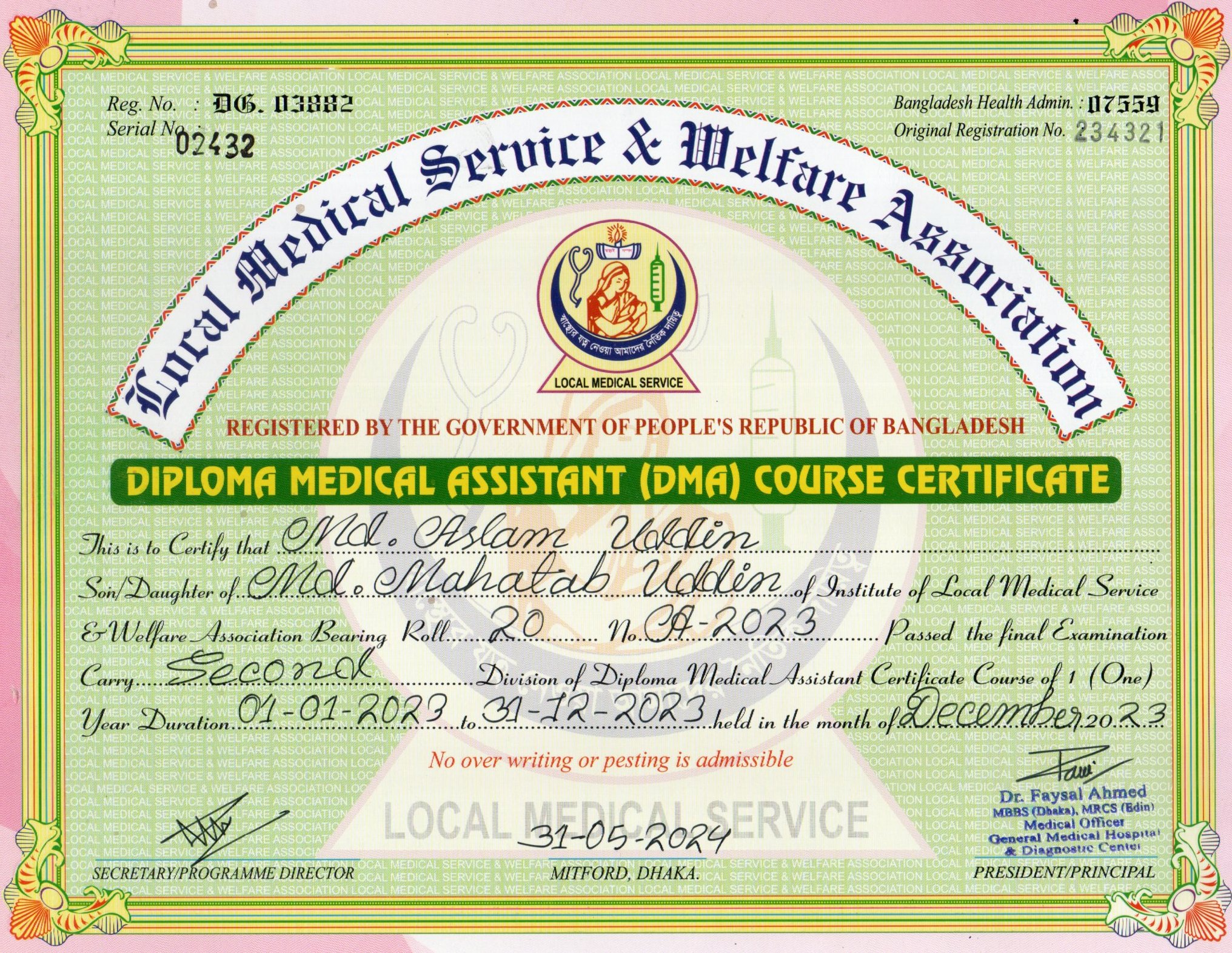 | Mother's Name | Alo Begum | Institute | LOCAL MEDICAL SERVICE |