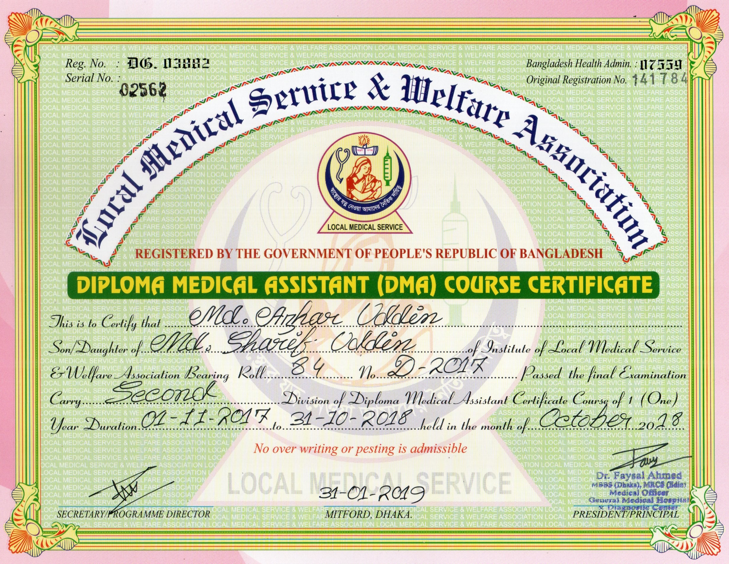 | Mother's Name | Farida Yasmin | Institute | LOCAL MEDICAL SERVICE |