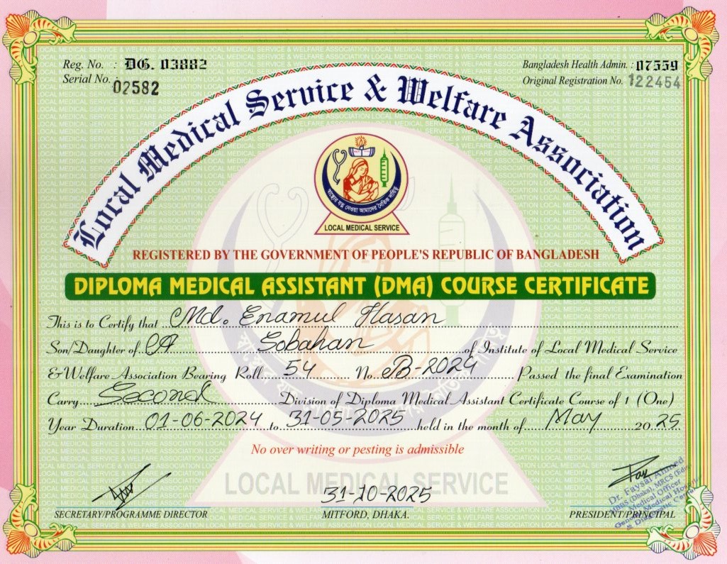 | Mother's Name | MOSA. PEARA BEGUM | Institute | LOCAL MEDICAL SERVICE |