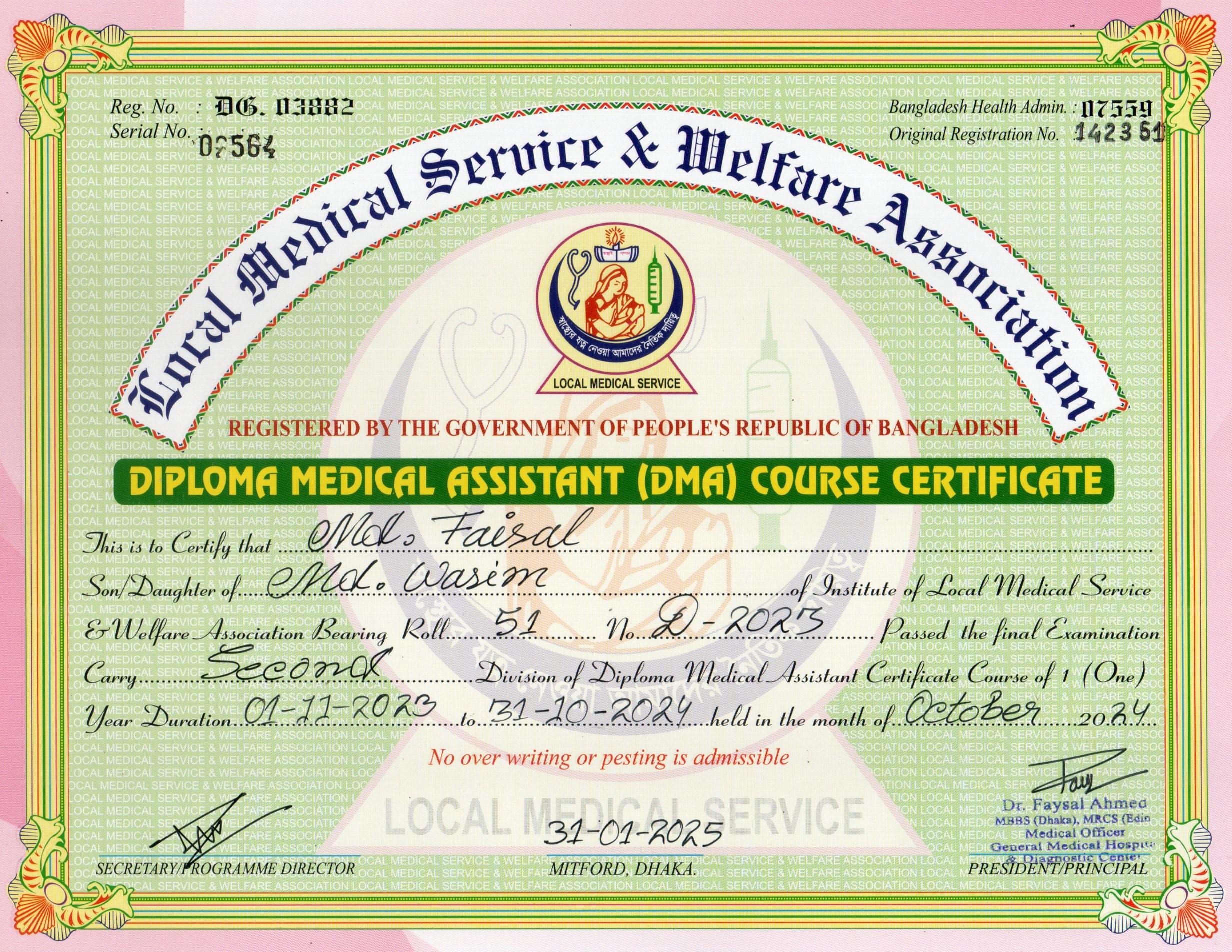 | Mother's Name | Mst. Reshma Begum | Institute | LOCAL MEDICAL SERVICE |