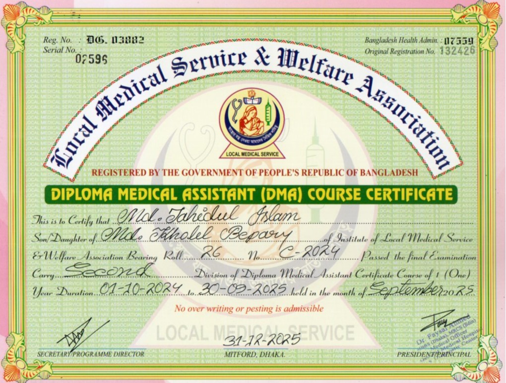 | Mother's Name | FATEMA BEGUM | Institute | LOCAL MEDICAL SERVICE |