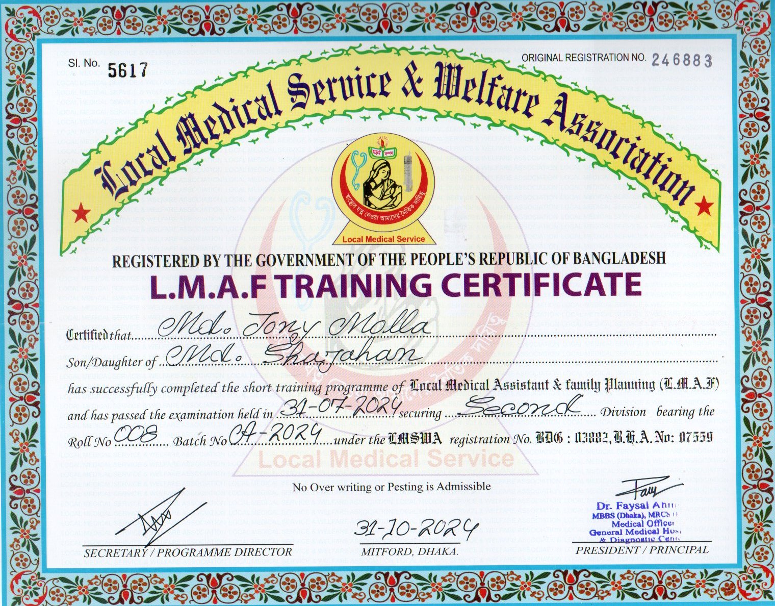 | Name | Md. Jony Molla | Branch | Mitford |