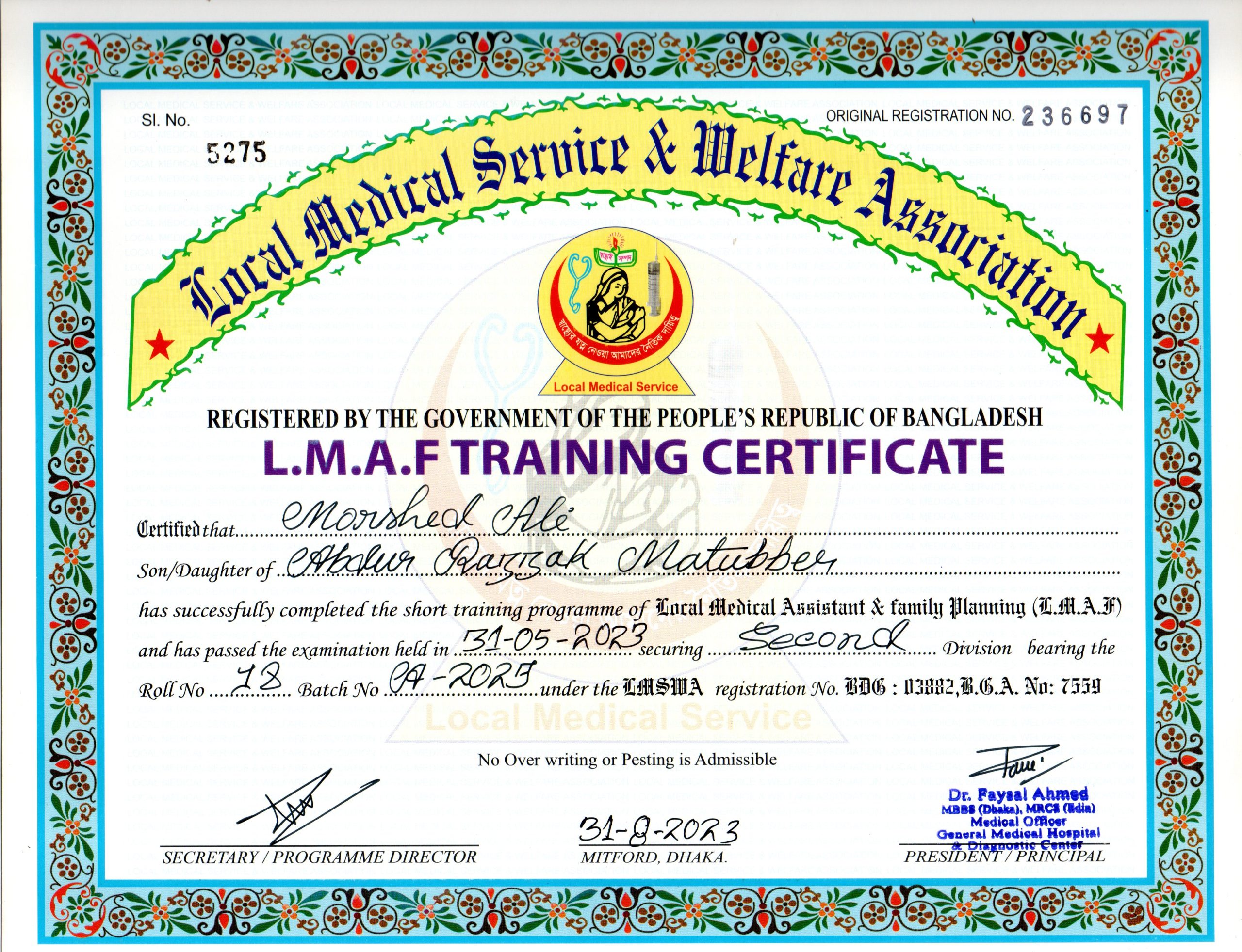 | Name | Morshed Ali | Branch | Mitford |