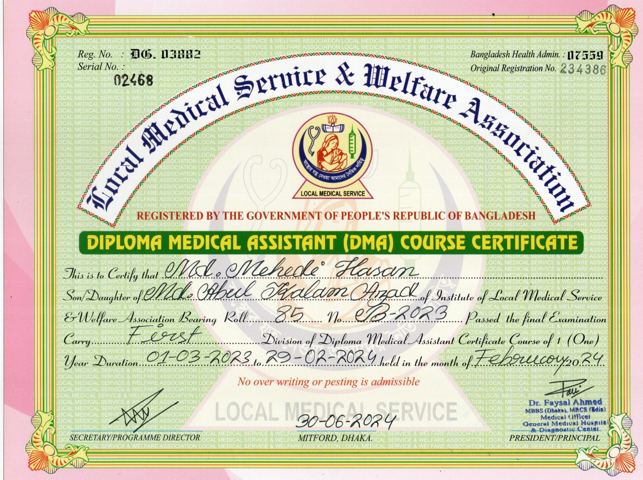 | Mother's Name | Nasima Begum | Institute | LOCAL MEDICAL SERVICE |