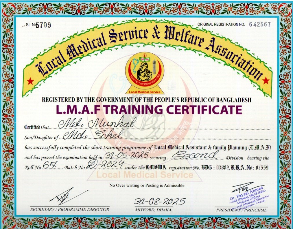 | Mother's Name | MUNNI | Institute | LOCAL MEDICAL SERVICE |