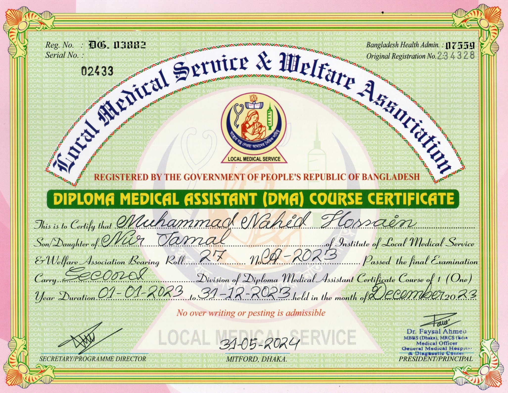 | Mother's Name | Parvin Akter | Institute | LOCAL MEDICAL SERVICE |