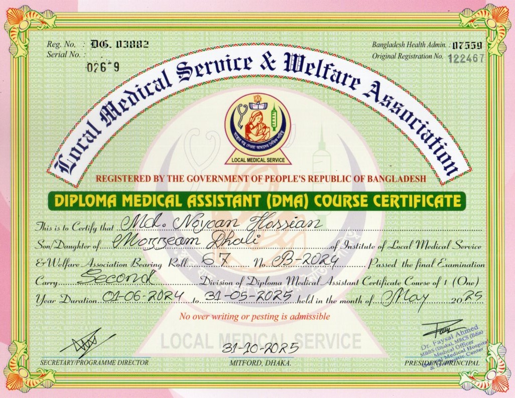 | Mother's Name | SABINA DHALI | Institute | LOCAL MEDICAL SERVICE |