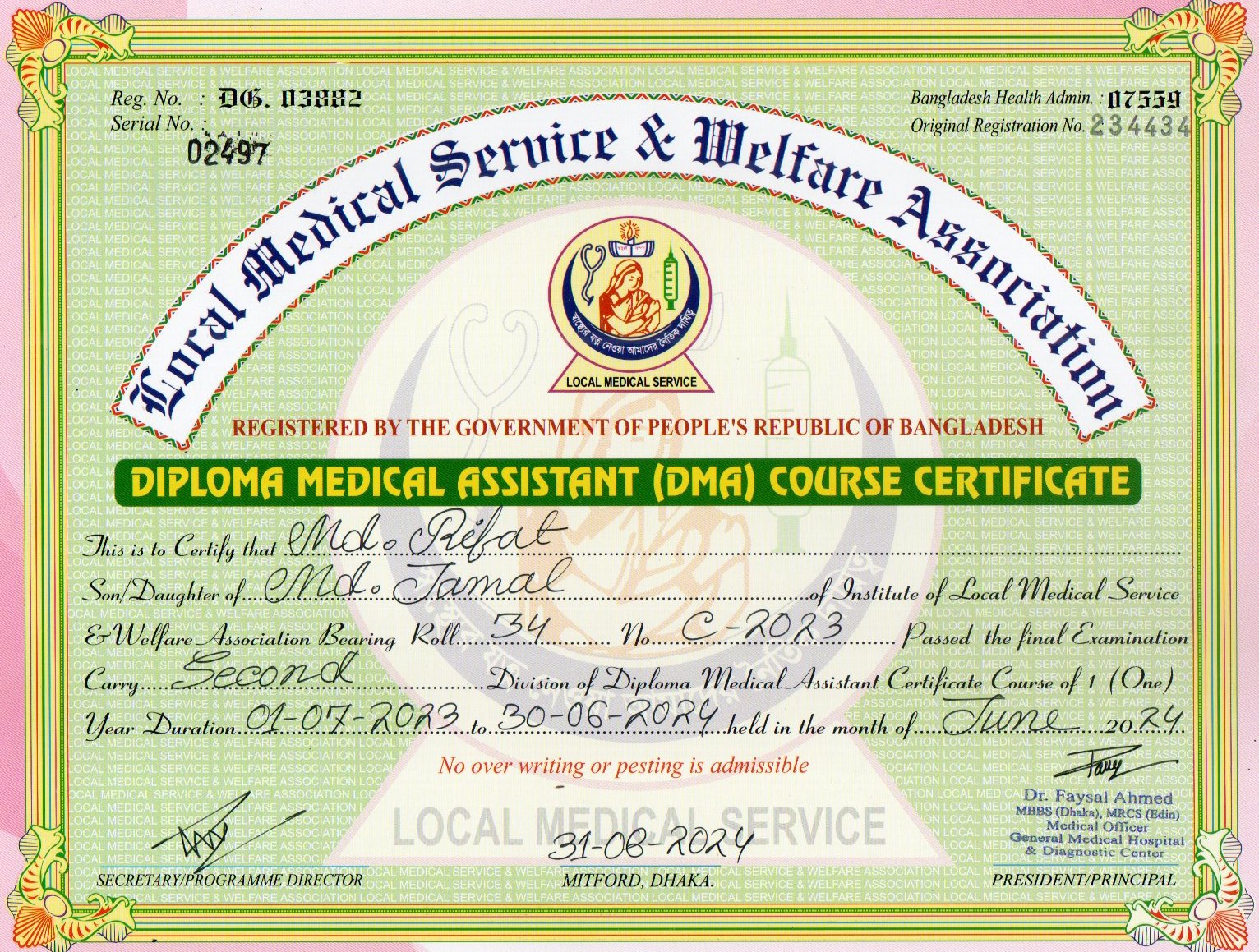 | Mother's Name | Jesmin Begum | Institute | LOCAL MEDICAL SERVICE |