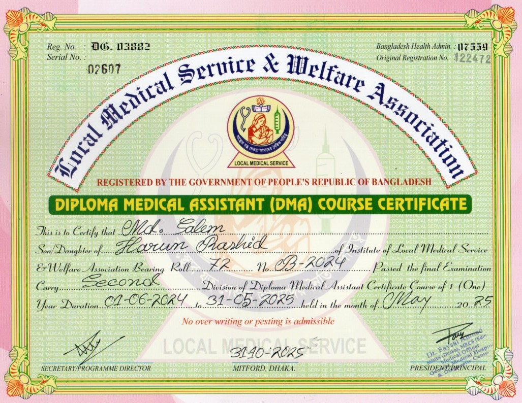 | Mother's Name | Mst Shima Akter | Institute | LOCAL MEDICAL SERVICE |