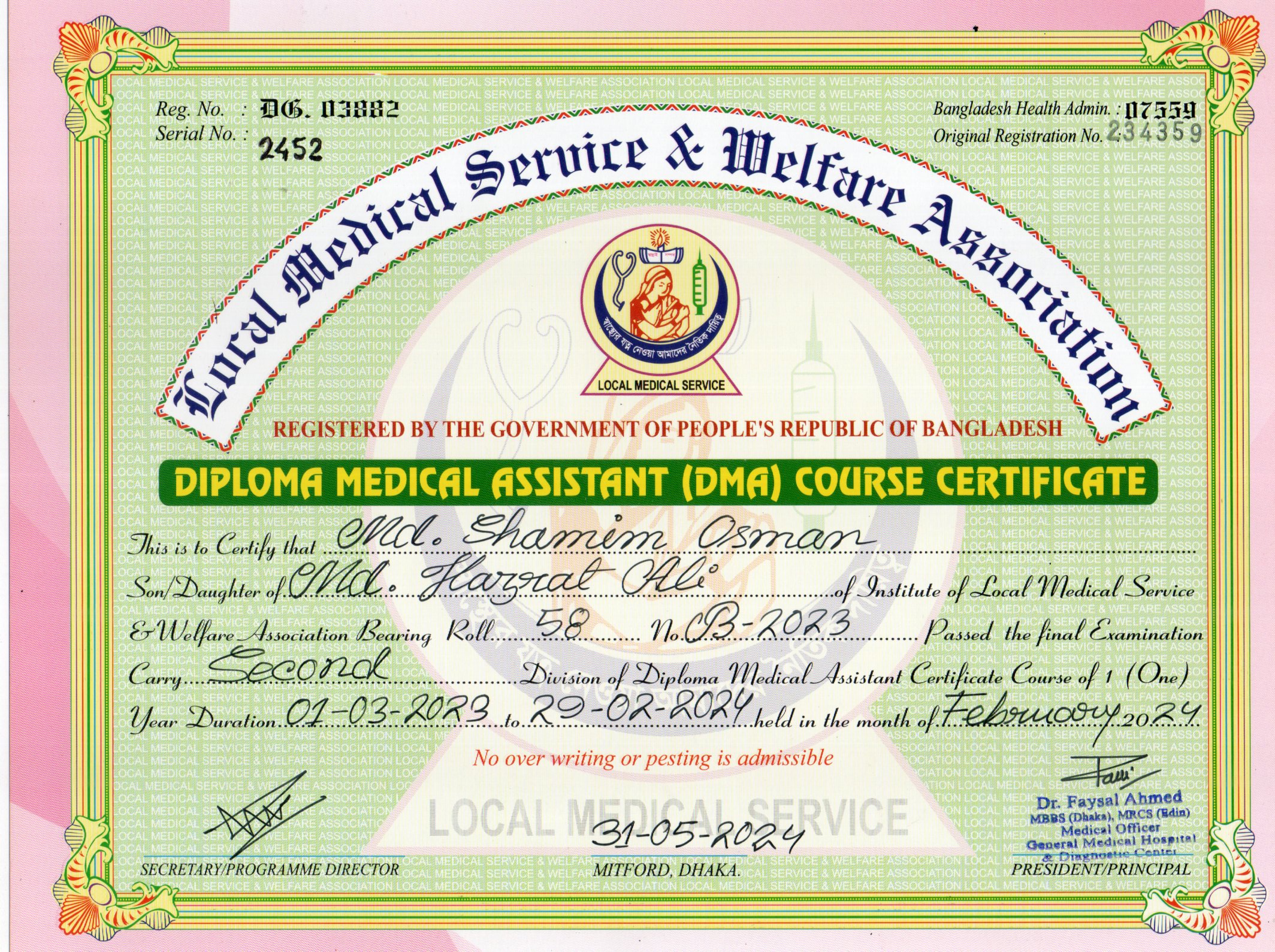 | Mother's Name | Nazmin | Institute | LOCAL MEDICAL SERVICE |
