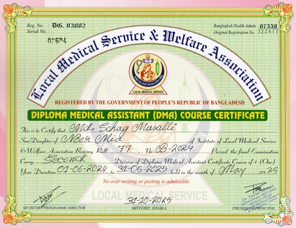 | Mother's Name | Reshma Begum | Institute | LOCAL MEDICAL SERVICE |