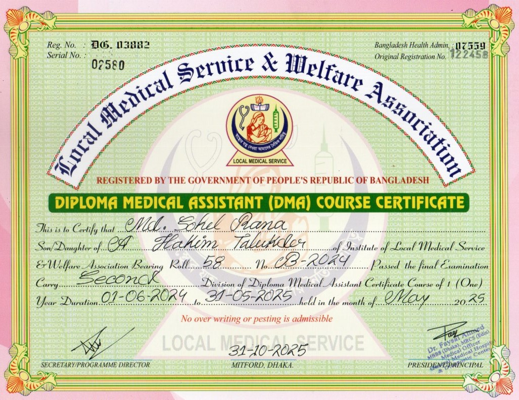 | Mother's Name | MONJUARA BEGUM | Institute | LOCAL MEDICAL SERVICE |