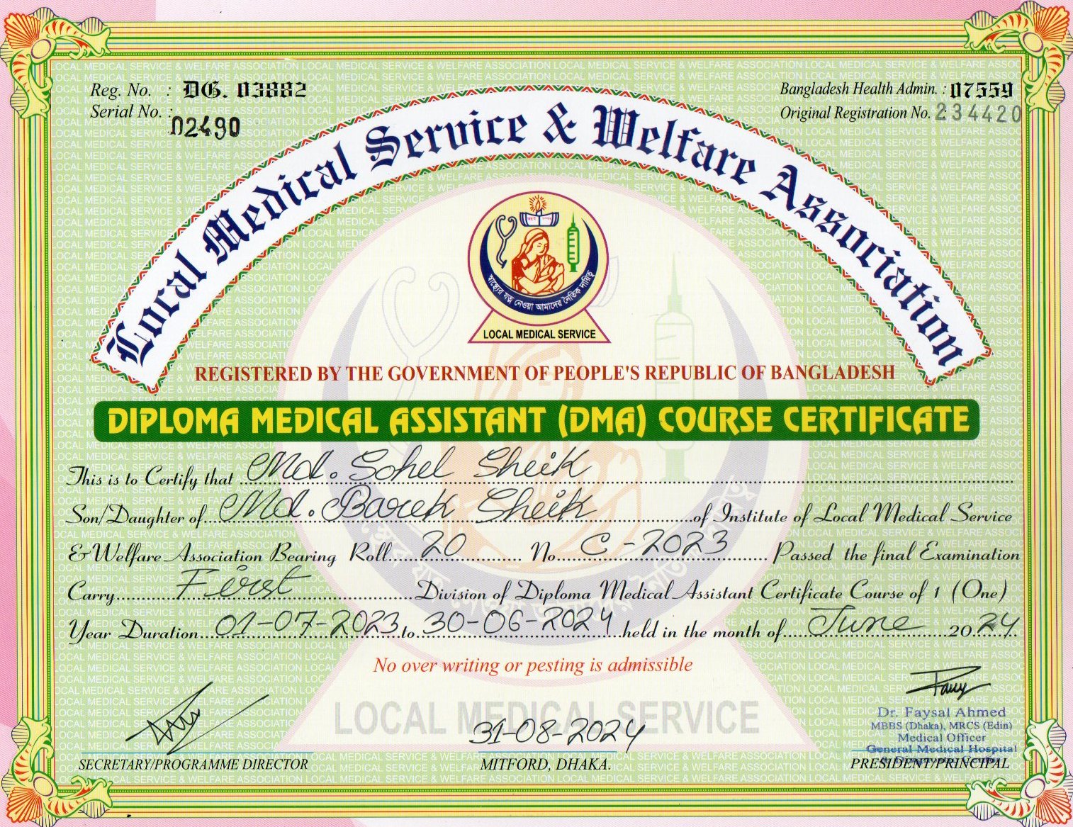 | Mother's Name | Mst. Ambia Begume | Institute | LOCAL MEDICAL SERVICE |
