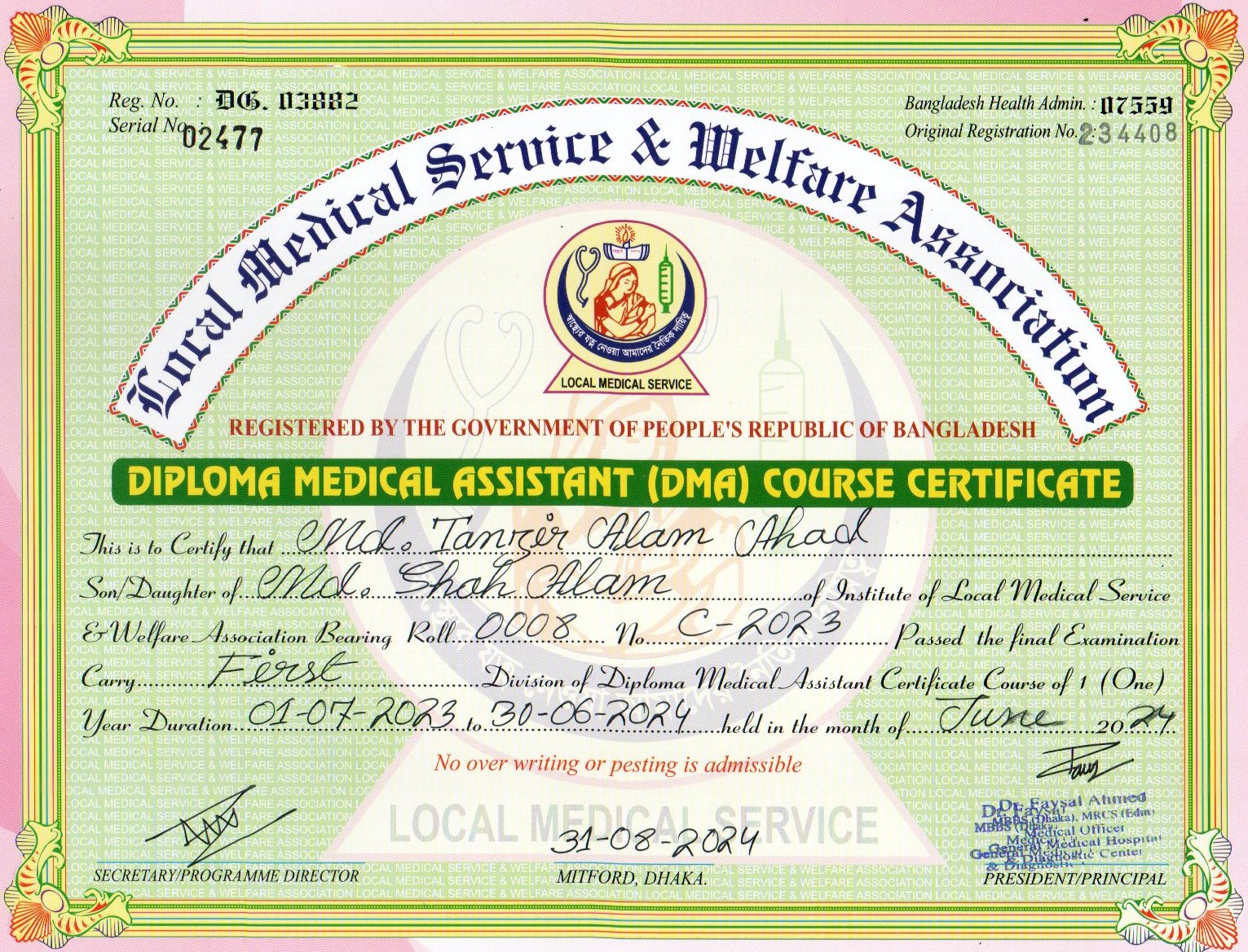 | Mother's Name | Arifa Sultana | Institute | LOCAL MEDICAL SERVICE |