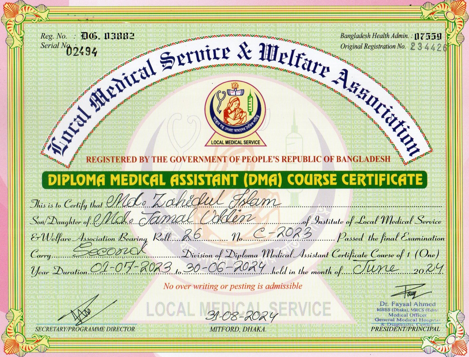 Mother's Name Halima Khatun Institute LOCAL MEDICAL SERVICE