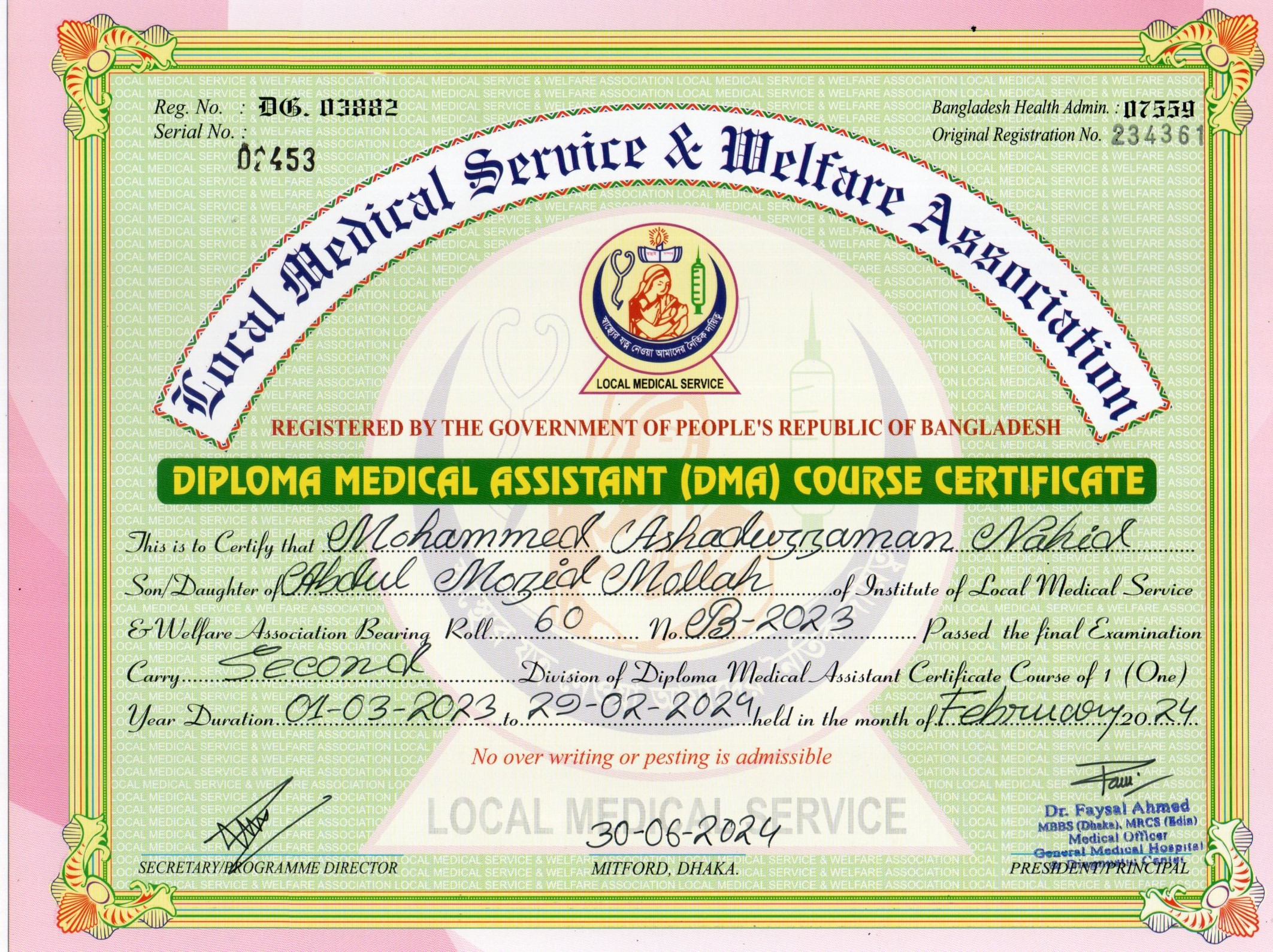 | Mother's Name | Juleka Begum | Institute | LOCAL MEDICAL SERVICE |