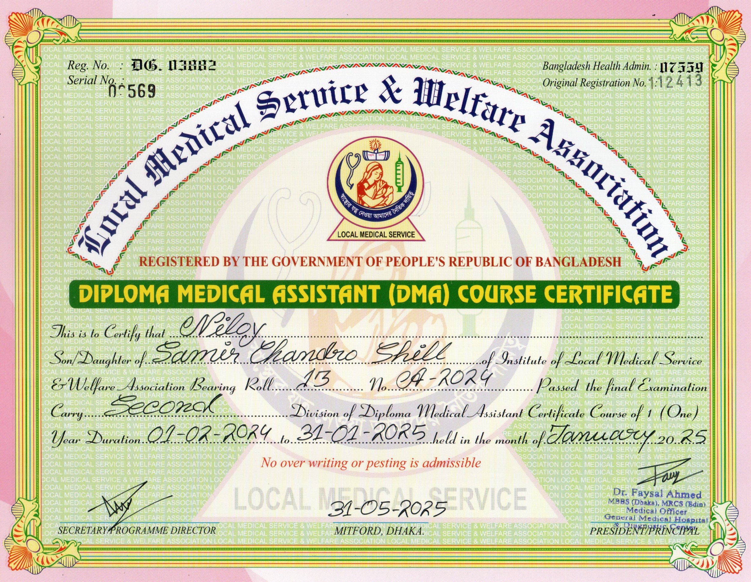 | Mother's Name | Jarna Rani Shill | Institute | LOCAL MEDICAL SERVICE |