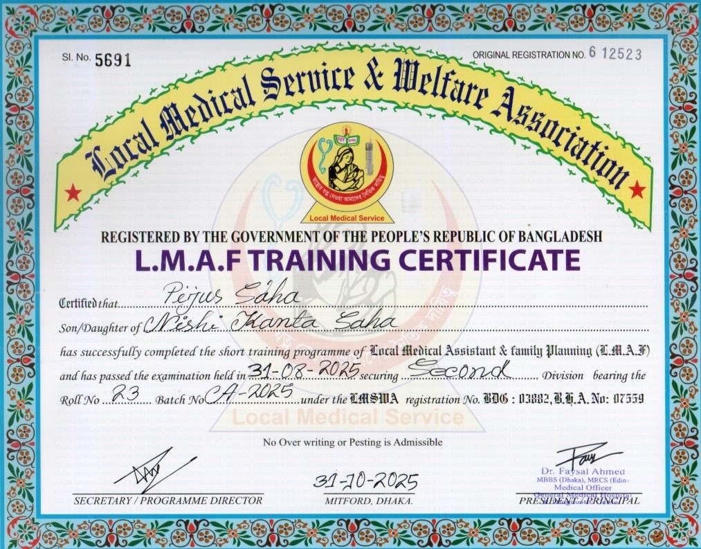 | Mother's Name | BINA SAHA | Institute | LOCAL MEDICAL SERVICE |