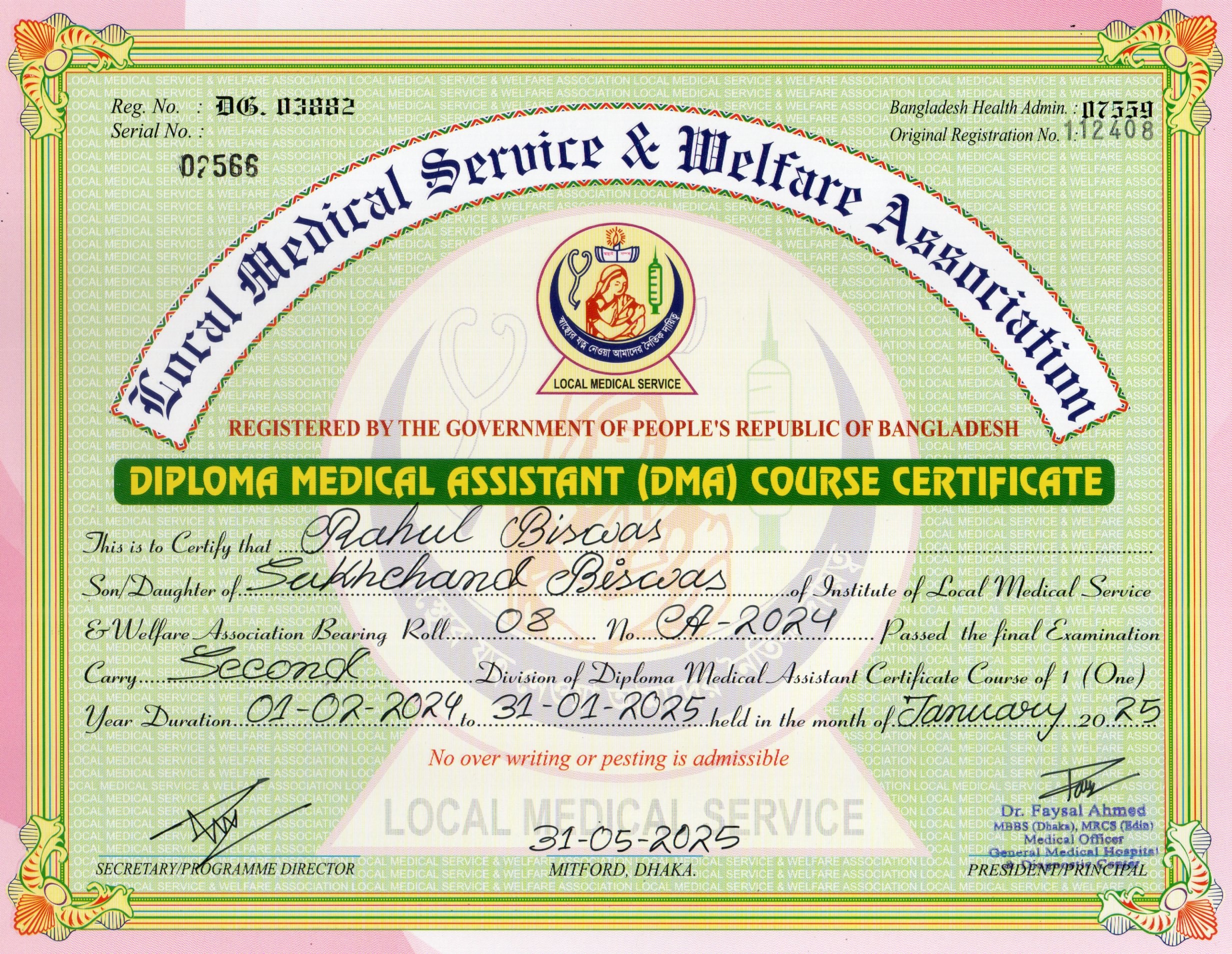 | Mother's Name | Bulu Biswas | Institute | LOCAL MEDICAL SERVICE |