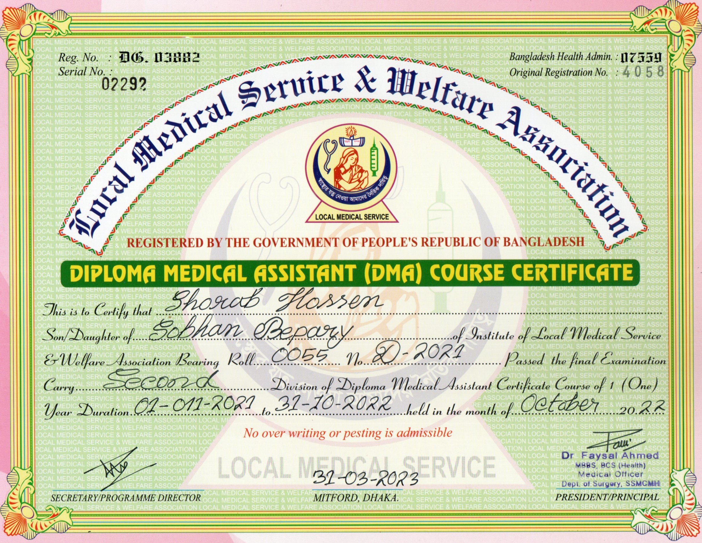 | Mother's Name | MST PARVIN BEGUM | Institute | LOCAL MEDICAL SERVICE |
