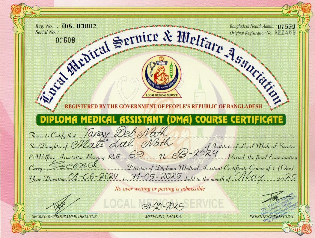 | Mother's Name | Anita Rani Nath | Institute | LOCAL MEDICAL SERVICE |